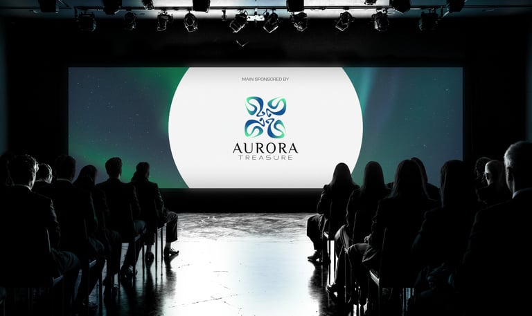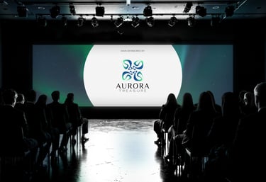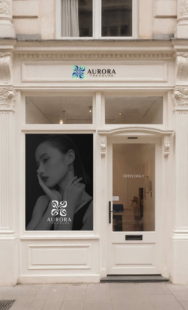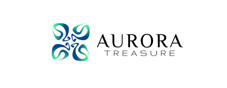 The serif typography contrasts with the organic symbol, balancing nature with refinement. The letter spacing and slim forms communicate airiness and clarity, while the serif details suggest craftsmanship and tradition — linking Aurora Treasure’s modern aesthetics with timeless values.
