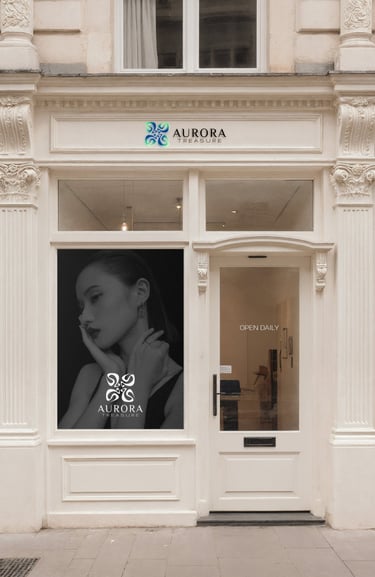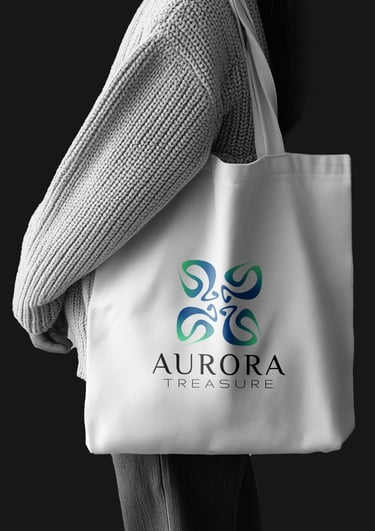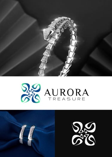 This logo radiates freshness, fluidity, and modern craftsmanship. Its form feels dynamic and expressive — like light in motion — giving the brand an aura of vitality and sophistication. It suggests that every product from Aurora Treasure is alive with creativity and effortless beauty.