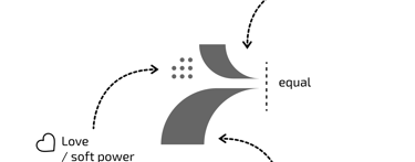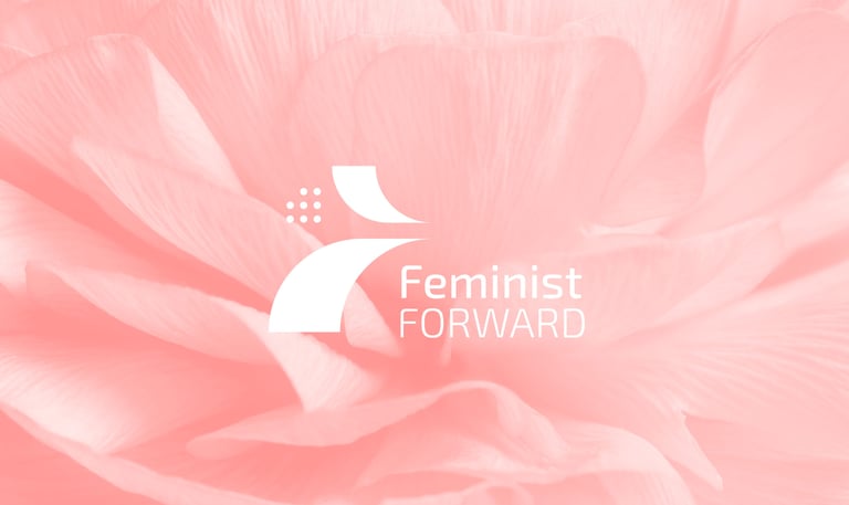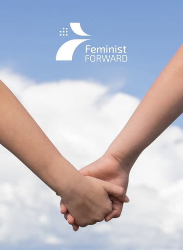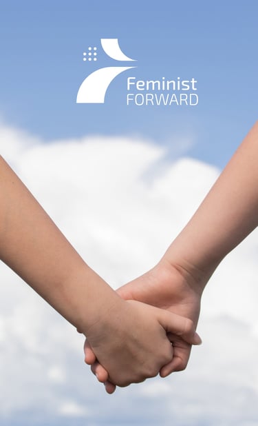 The icon merges soft and strong shapes — the upper curve representing femininity, the lower curve symbolizing masculinity, and the dots reflecting love, connection, and collective power. Together, they form a path of equality and progress.