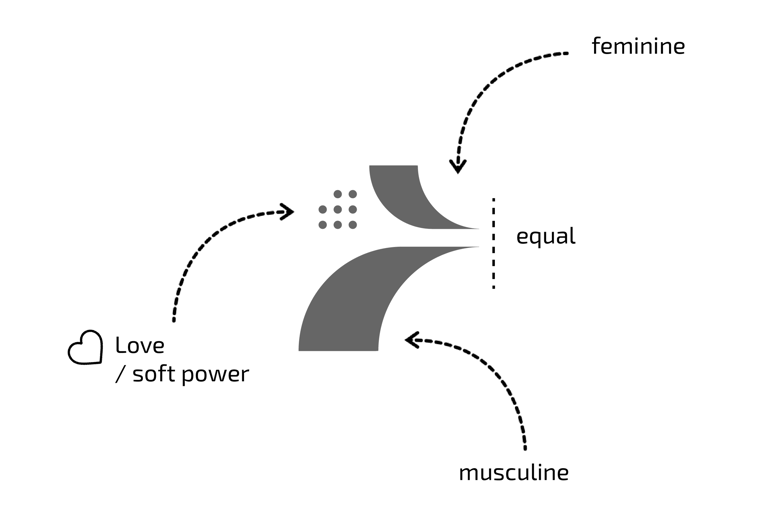 Concept 1: This concept balances femininity and masculinity while highlighting equality and soft power. The curves reflect harmony, movement, and inclusivity, embodying the collective strength of diverse feminist voices.