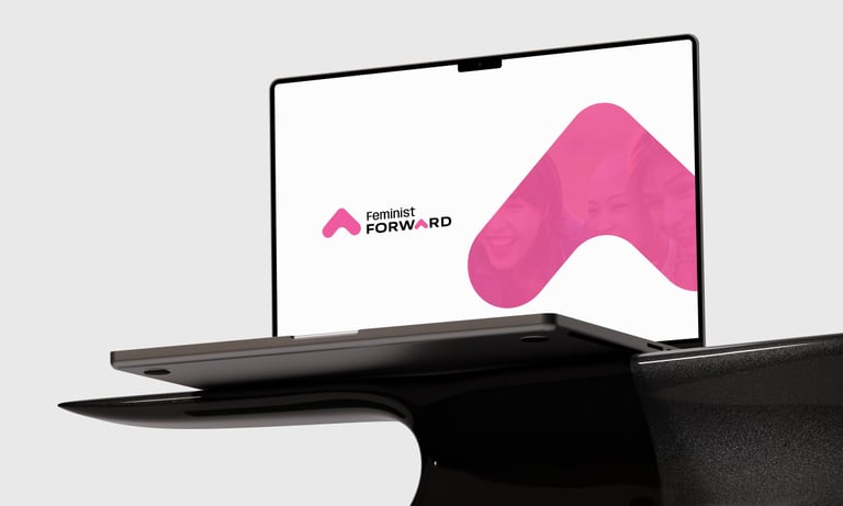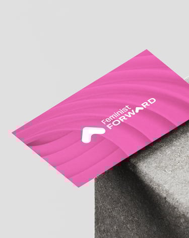 Strong sans-serif with geometric balance. The boldness of FORWARD contrasts with the lighter Feminist, reflecting inclusivity alongside strength and assertiveness.