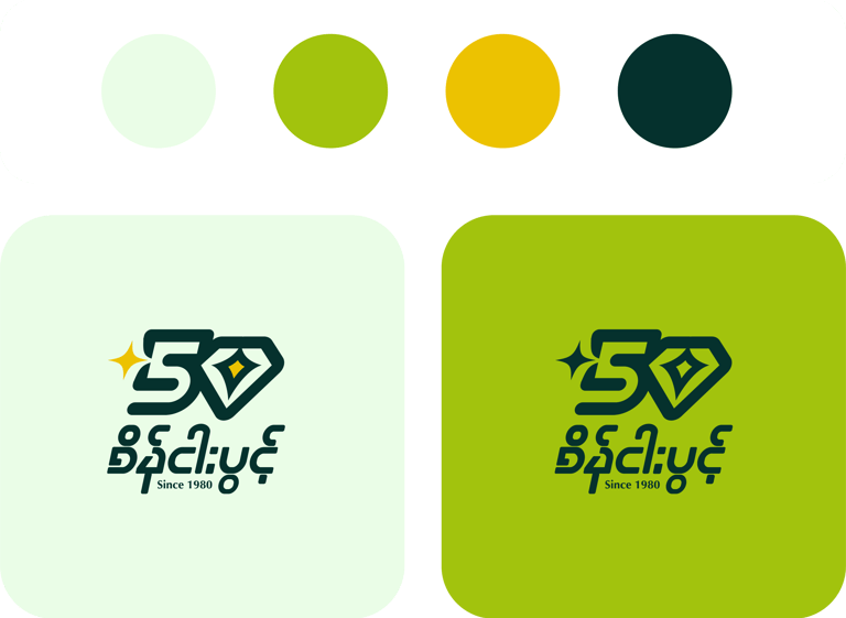 သစ်တောစိမ်းရောင်ရင့် (Deep Forest Green): တည်ငြိမ်မှုနဲ့ ယုံကြည်ရမှုကို ဖော်ပြပြီး Brand ကို သဘာဝဆန်ဆန်နဲ့ ပိုပြီး ခိုင်မာစေပါတယ်။