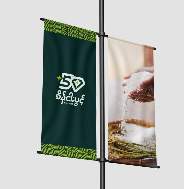 Concept 2: ဒီ Concept လေးက ရွှေဘိုဆန်စပါးခင်းတွေရဲ့ အောင်မြင်ဖြစ်ထွန်းမှုနဲ့ ရှင်သန်နိုးကြားမှုကို ကိုယ်စားပြုပြီး ဖန်တီးပေးထားပါတယ်။