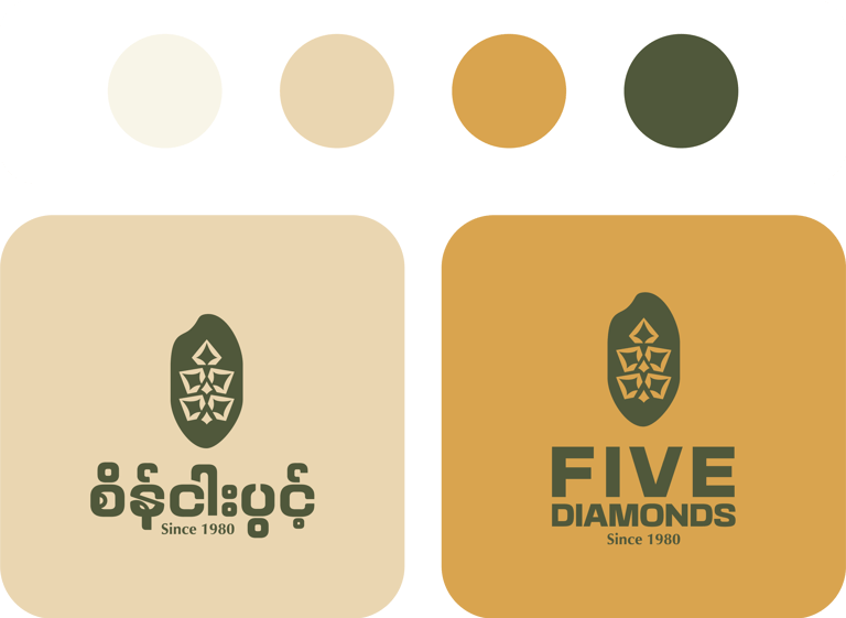 ရွှေဝါရောင် (Golden Yellow) ကျက်သရေနဲ့ပြည့်စုံသော Brand တစ်ခုအဖြစ် မြင်ယောင်စေပါတယ်။