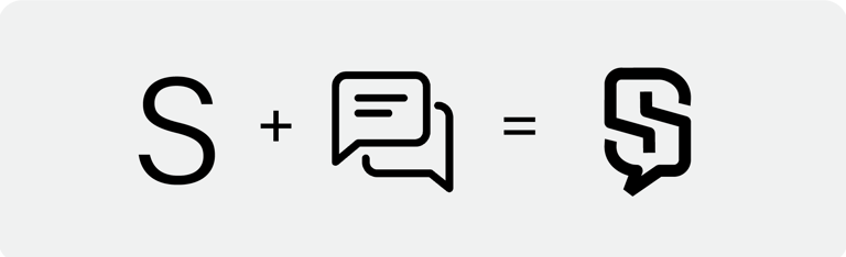 This monogram serves as a badge of clarity, encapsulating both conversation and instruction in a single iconic form.