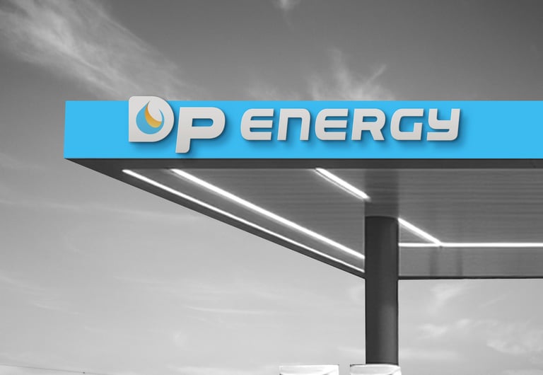 This version uses a stylized drop icon — merging the ideas of fuel, oil, energy, and purity. The curved drop design also softens the brand image, showing balance between strength and approachability.