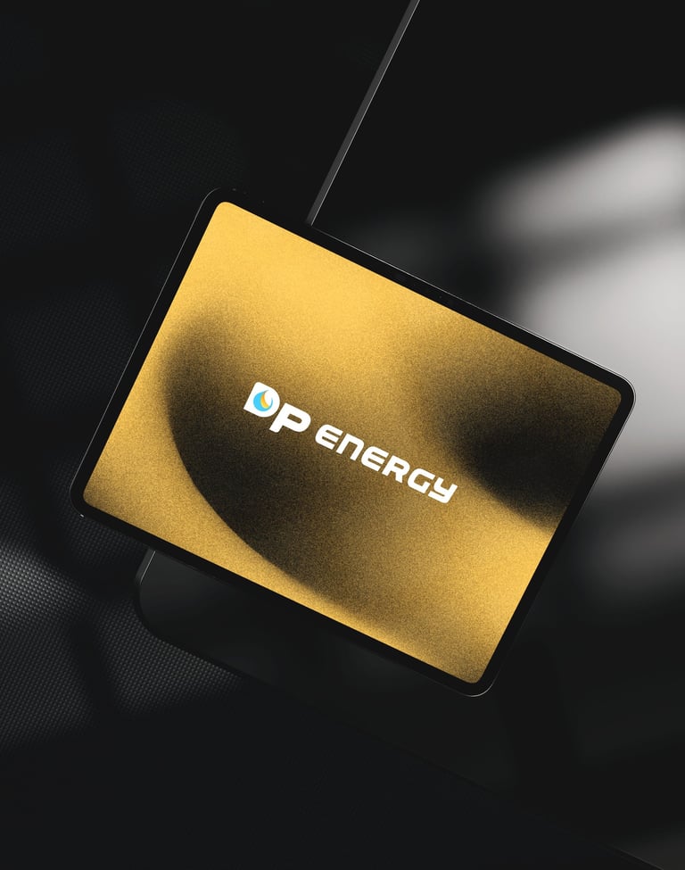 Curves in the "D" and "P" mirror the drop's elegance, creating a cohesive visual loop.