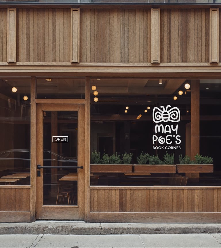 Dark Blue – Represents trust, intelligence, and stability, reinforcing the idea of a reliable and educational bookshop.
