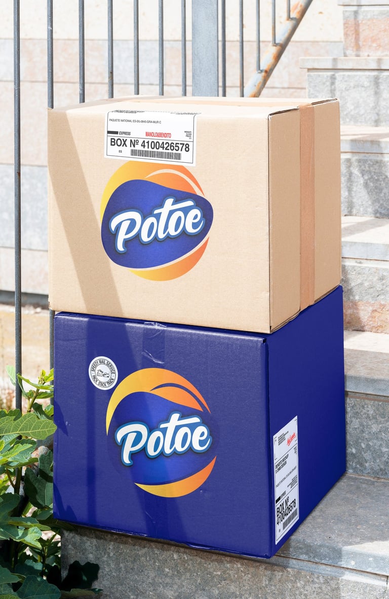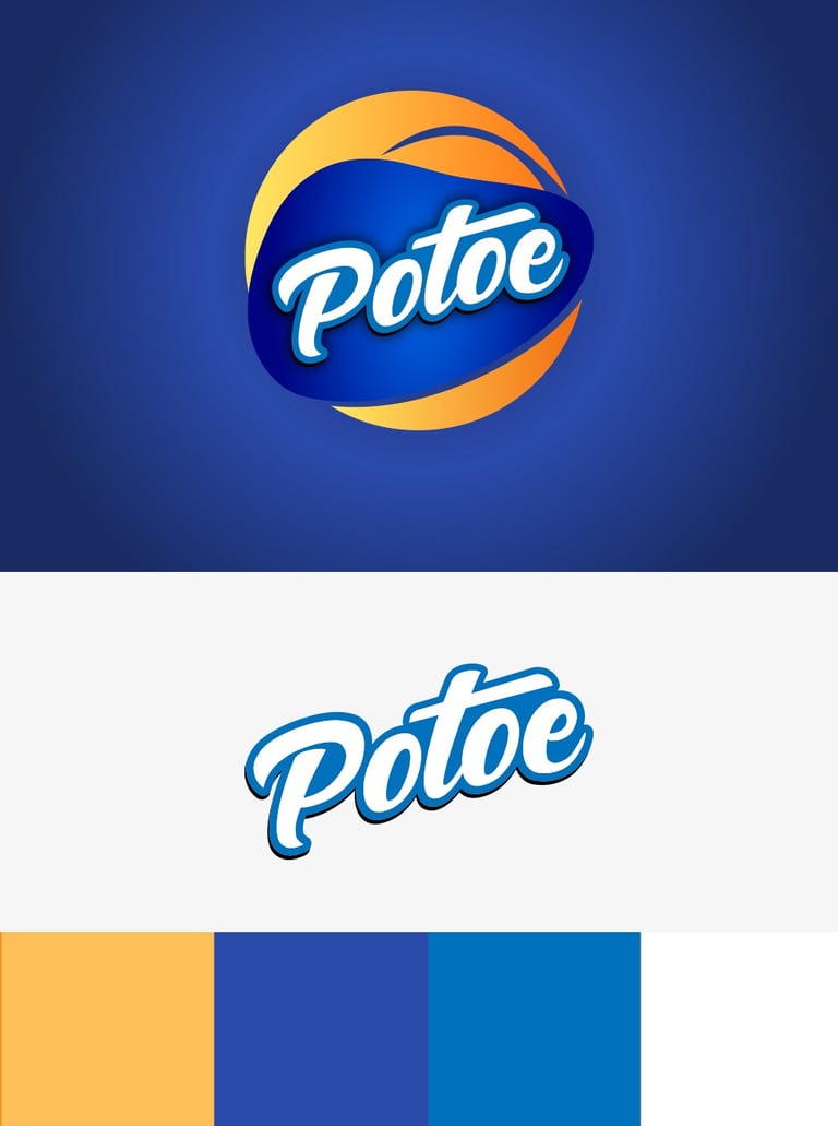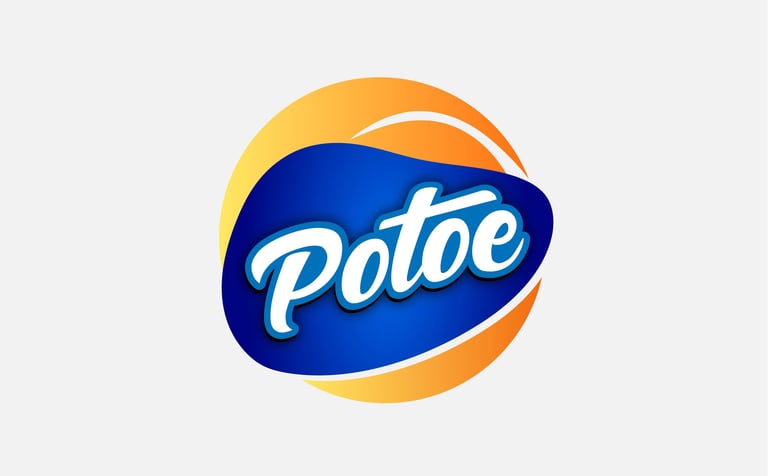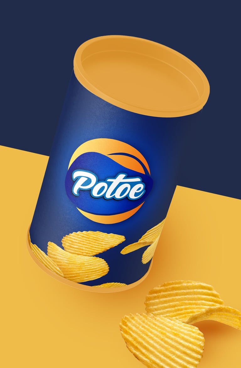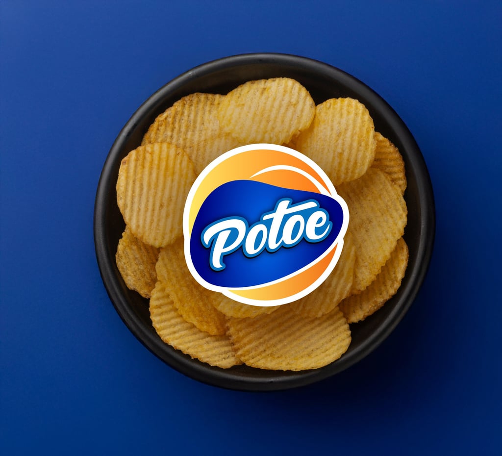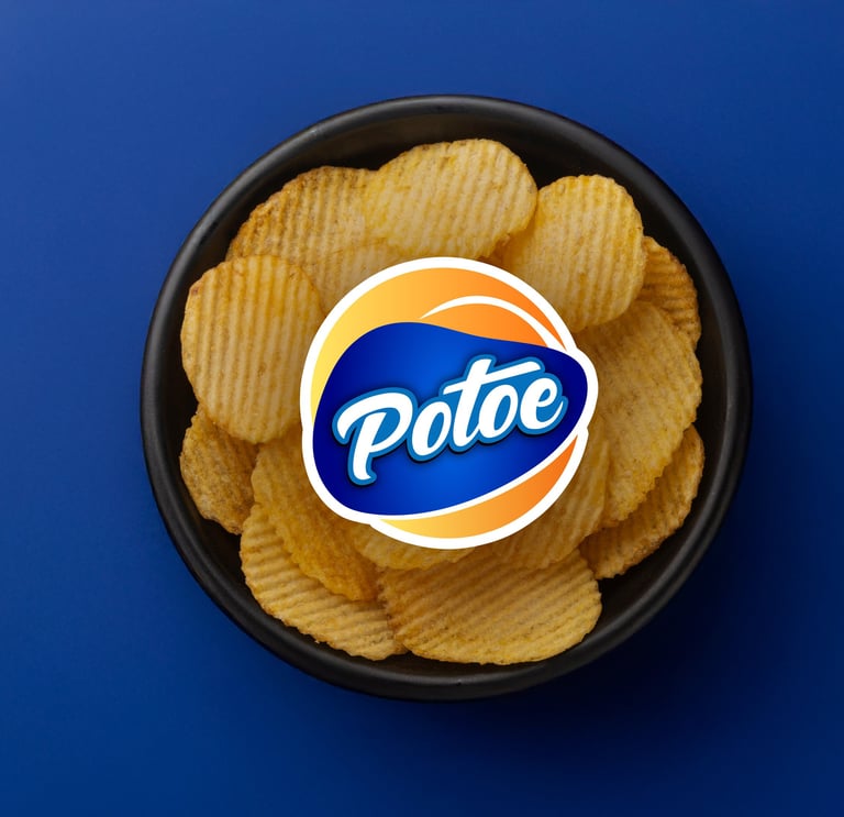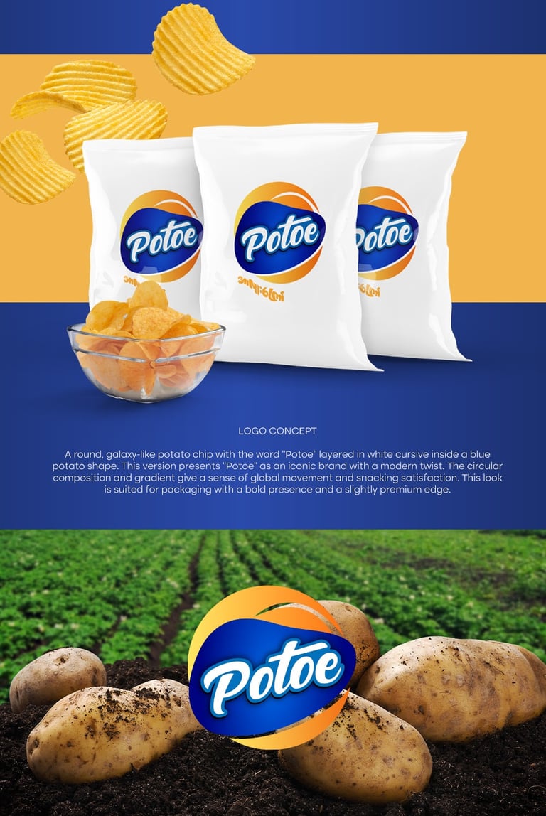 This version presents “Potoe” as an iconic brand with a modern twist. The circular composition and gradient give a sense of global movement and snacking satisfaction. This look is suited for packaging with a bold presence and a slightly premium edge.