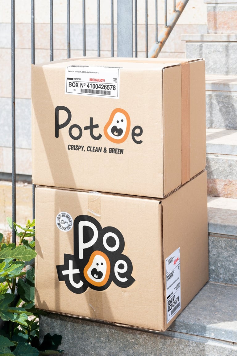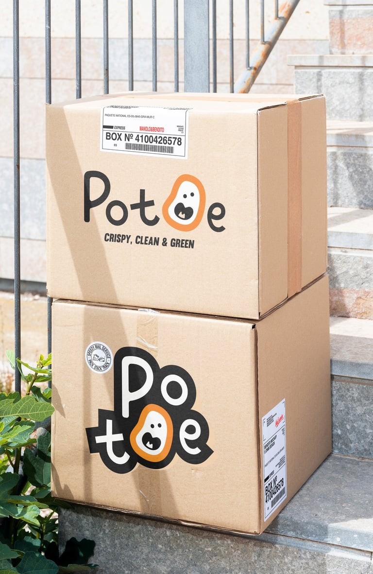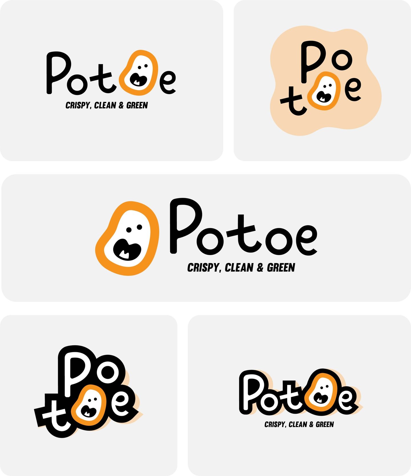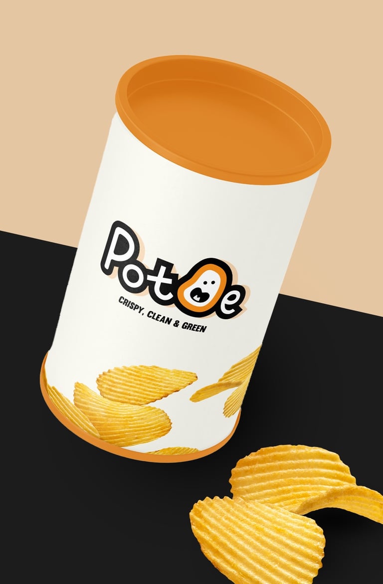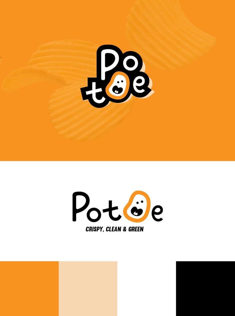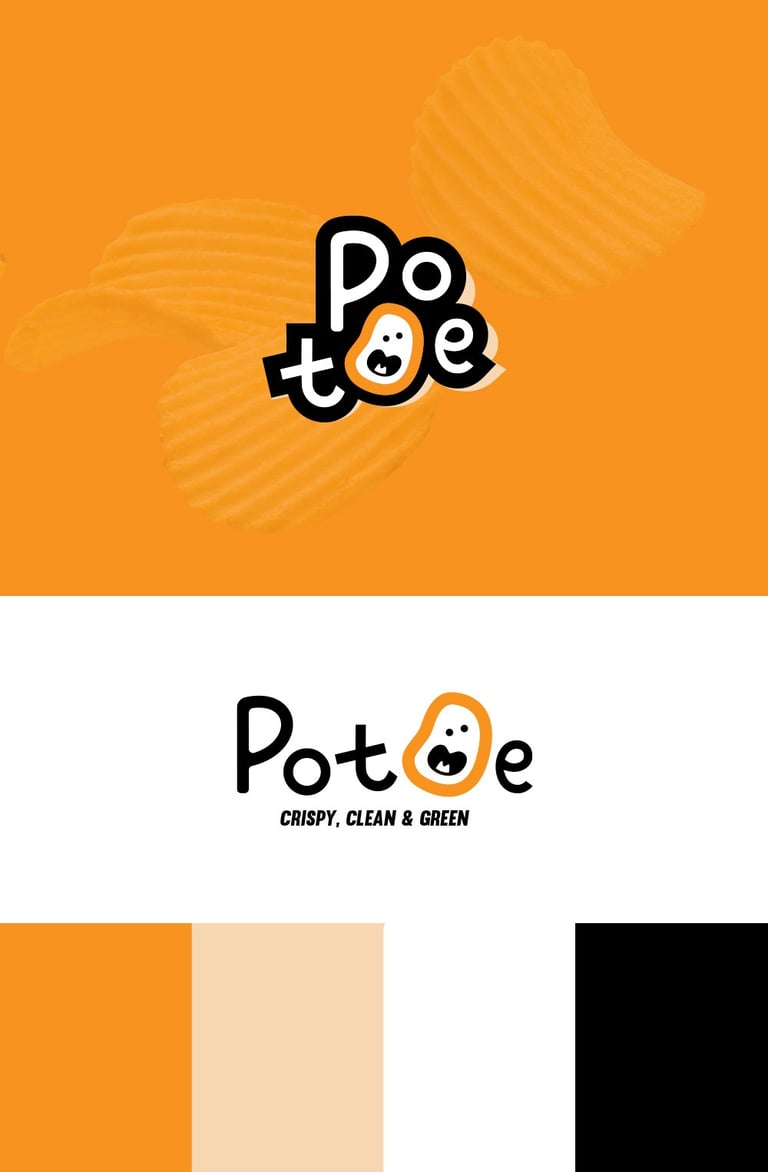 Concept 3: A fun and modern identity aimed at younger audiences and health-conscious snackers. The irregular potato mascot and hand-drawn type deliver a fresh, friendly, and clean look that matches the tagline: Crispy, Clean & Green.