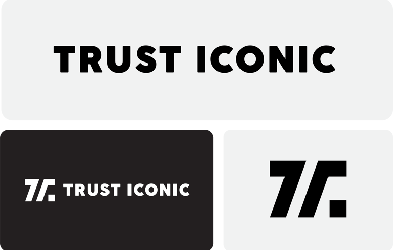 The subtle inclusion of "I" within the structure of "T" reflects the unity of Trust and Iconic, emphasizing the brand’s core values.
